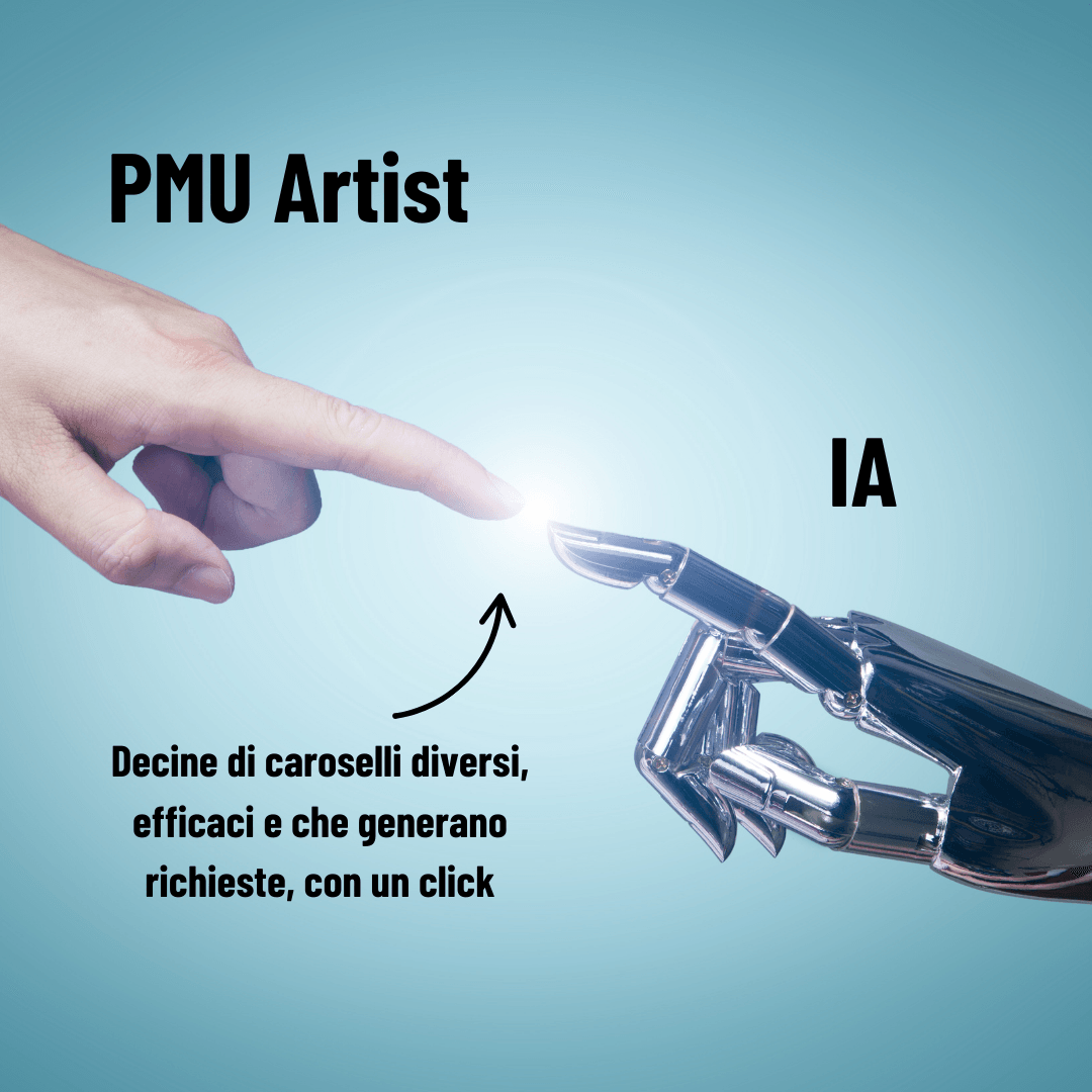 Con "Caroselli PMU Automatici con l’IA" generi decine di caroselli già scritti, personalizzati e pronti per postare sul tuo profilo e vendere i tuoi trattamenti.